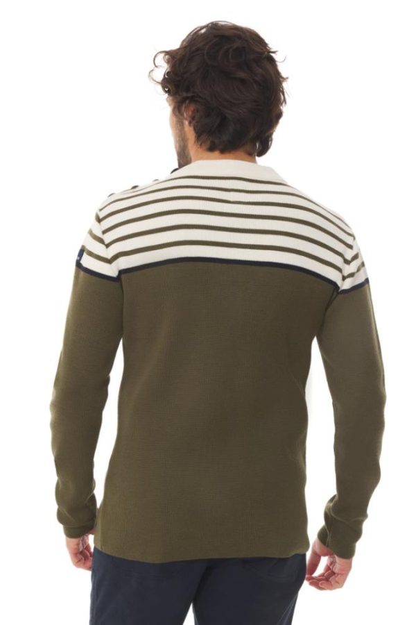 Dans le pur esprit d’un authentique pull marin, le modèle Tim se distingue avec son placement original de rayures.