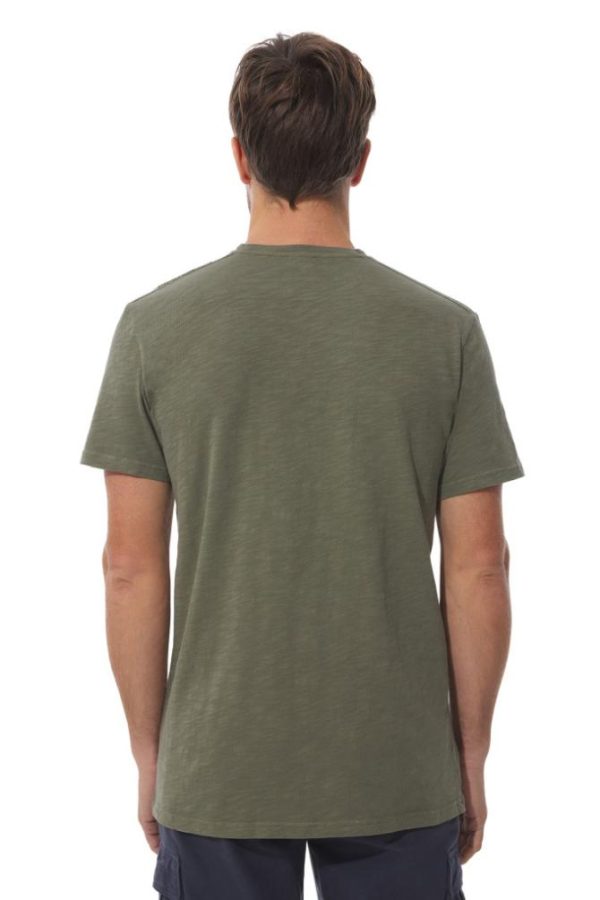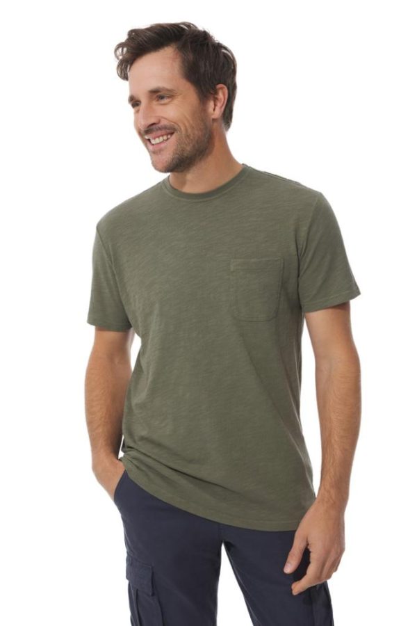 Craquez pour le t-shirt manches courtes homme en jersey flammé de coton bio. Ce basique affiche une pointe d’originalité par le joli relief de sa matière et sa poche poitrine. A porter avec un bermuda en toile pour un look casual décontracté.