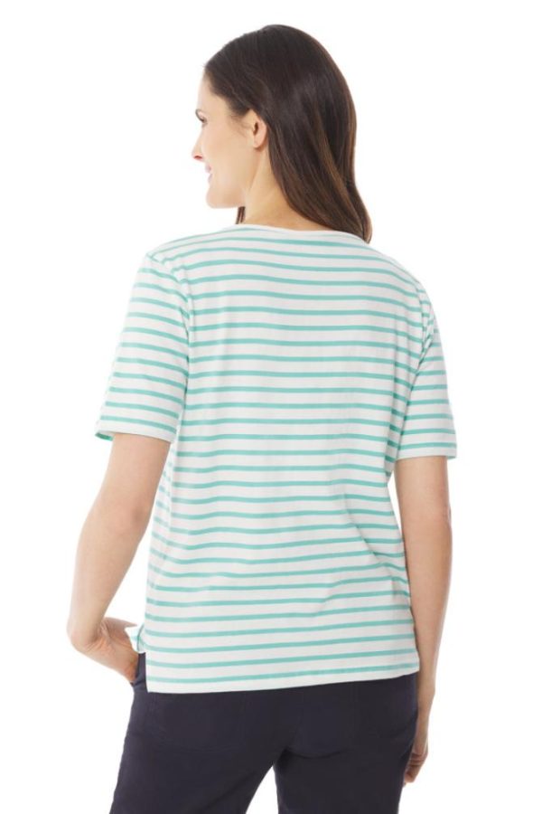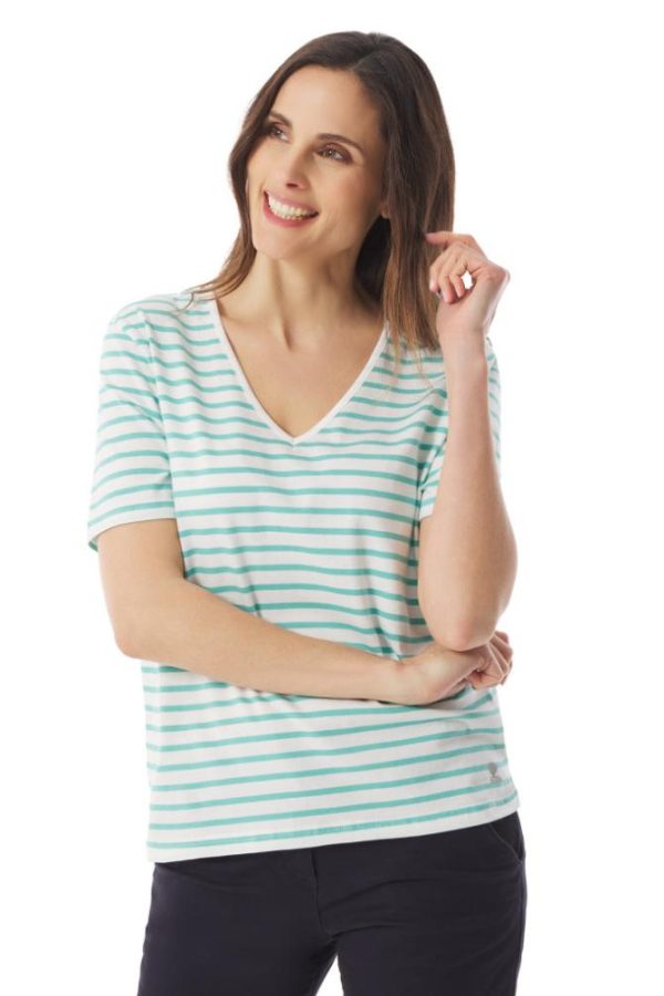 Polo, T-Shirt Mousqueton | T-shirt Rayé Col V Vert Turquoise Femme
