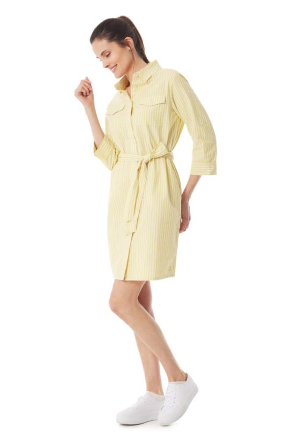 Profitez de journées ensoleillées avec la robe chemise rayée ! Ses rayures réveillent votre look et apportent du style à votre look. Adoptez ce chambray de coton qui garantit un confort optimal pour cet été. Petit plus : sa ceinture ajustable à votre guise !