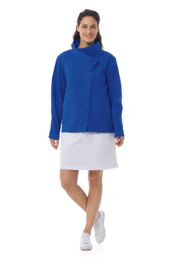 Yaneg, c’est la veste légère qui vous accompagne vers les beaux jours ! Un grand col montant asymétrique, une belle coupe féminine évasée et un boutonnage décalé, cette nouveauté va vous plaire. Col à porter bien remonté pour montrer sa coupe en biais ou bien ouvert et il se posera joliment sur les épaules.